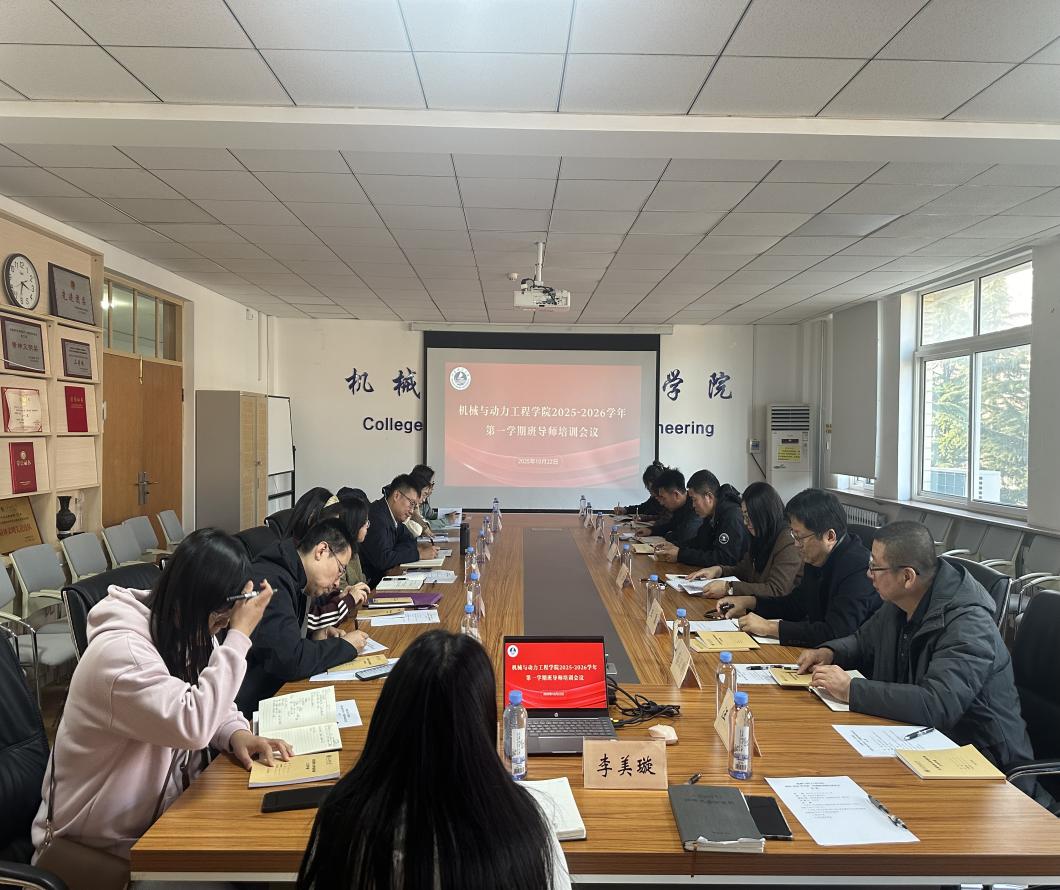 为进一步加强班导师队伍建设,明确班导师工作职责,切实提高学生培养工作质量,10月22日,机械与动力工程学院在北院办公楼N416召开2025-2026学年第一学期班导师培训会议。学院党委书记张力出席培训会,各班级班导师及辅导员参加会议。会议由团委书记贺宝华主持。