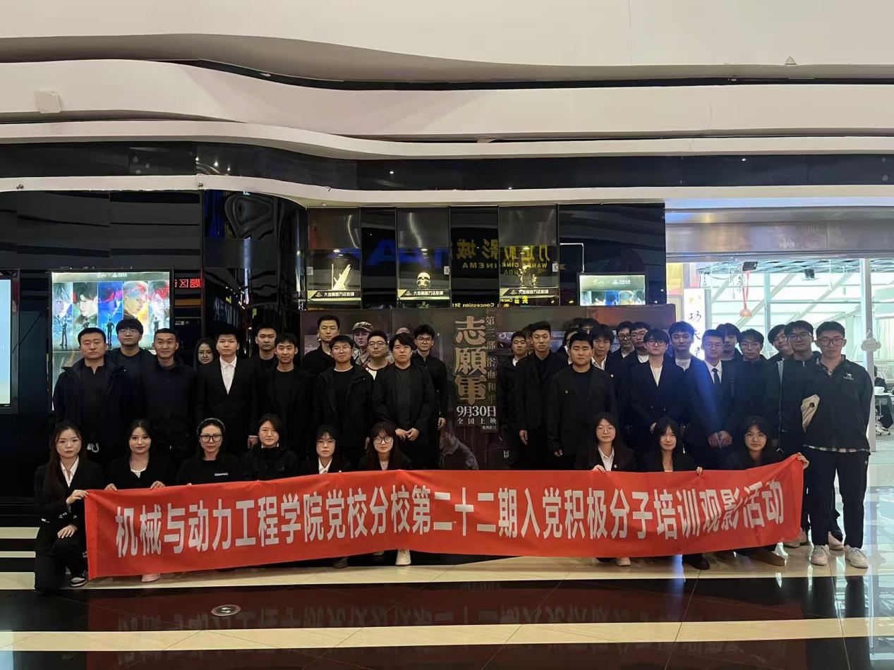 机械与动力工程学院党校分校于10月15日组织开展第二十二期入党积极分子培训观影活动。学院研究生党支部书记及支委会成员、本科生党支部书记及支委会成员、组织员,第二十二期入党积极分子50余人集体观看了爱国主义影片《志愿军:浴血和平》。