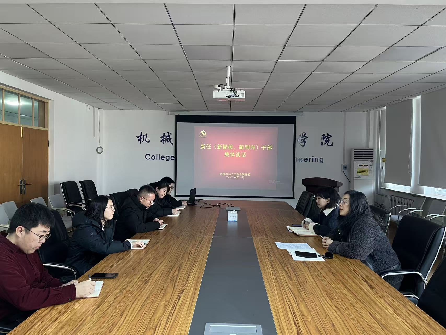 1月26日,机械与动力工程学院党委在党员活动室召开新任(新提拔、新到岗)干部集体谈话会议。学院党委书记张力主持会议并讲话。院长潘澜澜出席会议,新任(新提拔、新到岗)干部参加会议。